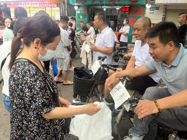 当天正值周六休息日,桥南新街上却是人群拥挤,狭窄的道路两旁被骑电瓶车的老板们占据,大家坐在车上一字排开,车篮里放着招工纸牌以及衣服款式,等待制衣工过来询价。中间来往的运衣服的车,以及过往的电瓶车和行人交汇,车或者人多站一会儿就会出现堵车。