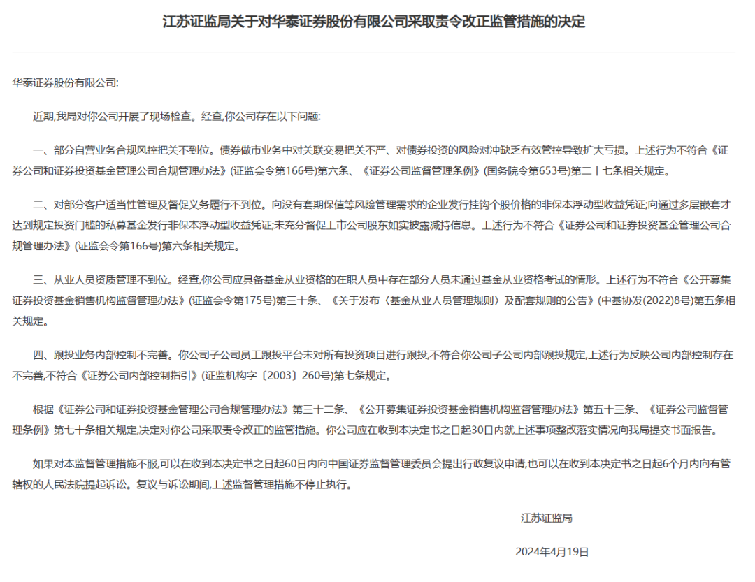 总资产超9000亿元的头部券商,华泰证券多项业务存在问题,遭监管责令改正!