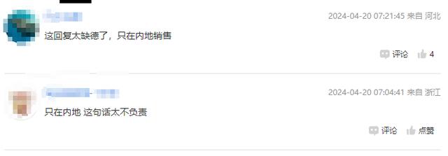 “只在内地生产及销售”,一时间,该回复引发不少网友质疑。