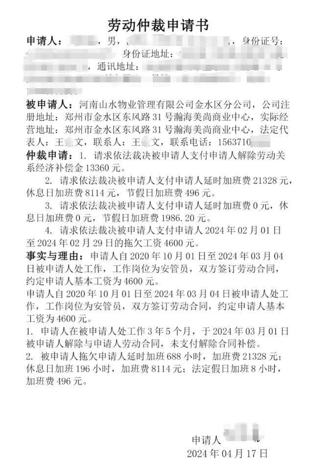 因公司未支付足额加班费并单方面解除劳动合同,陈磊已于4月17日向郑州市金水区劳动争议仲裁委员会申请劳动仲裁。