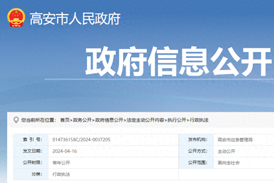 2. 处罚决定书文号:(高市)应急罚[2024]11号