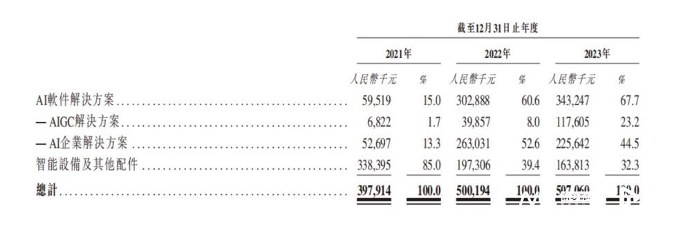 出门问问成立于2012年,据招股书介绍,其主要以生成式AI与语音交互技术为核心,提供AI软件解决方案和智能设备及配件。在2022年以前,出门问问营收主要来自以智能设备及配件为主的硬件收入,而发展至近年,AI软件解决方案已然成为出门问问的营收“主力”。