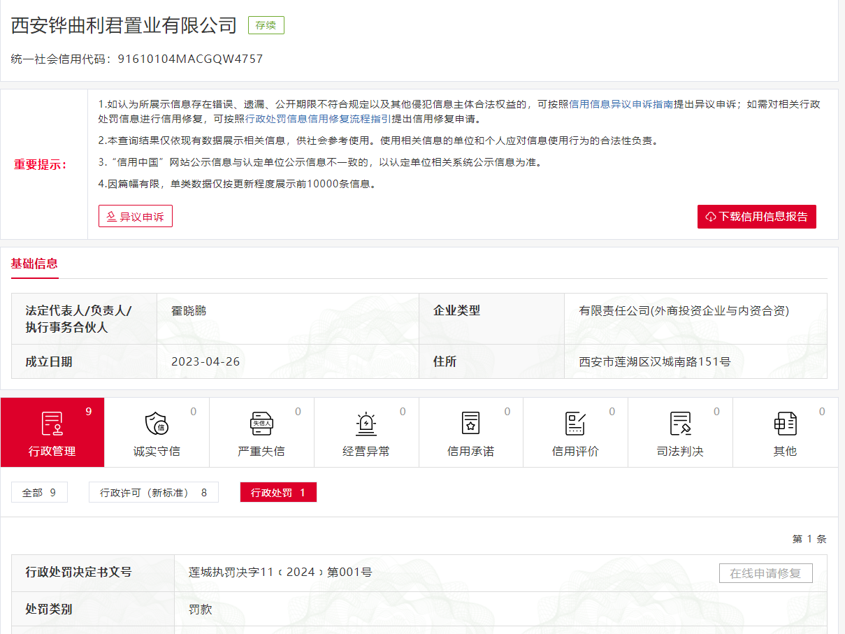 近日,记者从信用中国网站获悉,因违法建设,华发股份(600325)旗下西安铧曲利君置业有限公司被西安市莲湖区城市管理和综合执法局处以罚款54万余元。