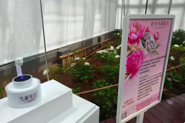 “这颗‘牡丹钻石’有3克拉,价值30万元,是我们运用生物体提碳技术,从牡丹中提炼碳元素,经过高温、高压,再培育而成。”洛阳生命宝石科技有限公司负责人王静说。