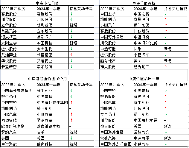 与此前的持仓相比,今年一季度,由丘栋荣独自管理的4只基金中庚小盘价值、中庚价值领航、中庚港股通价值18个月、中庚价值品质一年均出现增减持操作,但前十大重仓股整体变化不大,主要的增持方向集中在地产、互联网平台、医药、汽车行业。