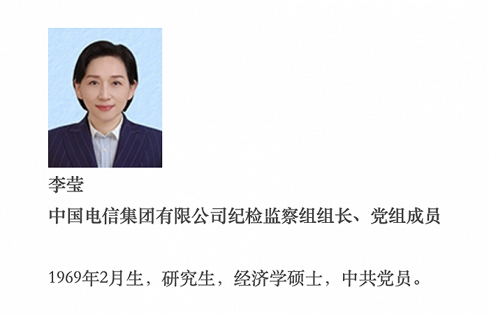 据中国电信官网显示,李莹任中国电信集团有限公司纪检监察组组长、党组成员。