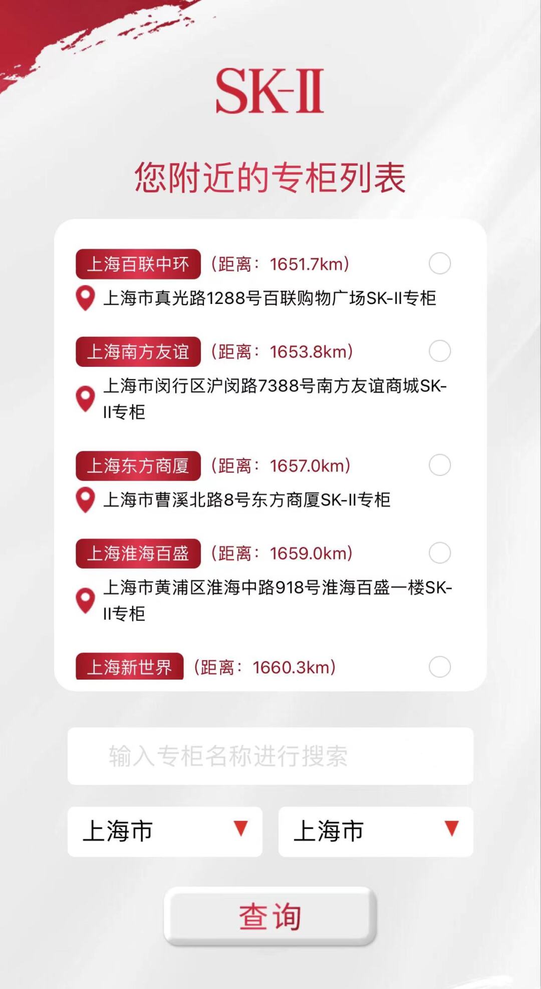 SK-II官方公众号显示,截至4月16日,上海有10家SK-II专柜正常营业。据北京商报报道,根据公开数据,此前上海SK-II专柜数为18家。按照上述两个数据来看,也就是说,SK-II在上海地区几乎撤掉了三分之一的专柜。