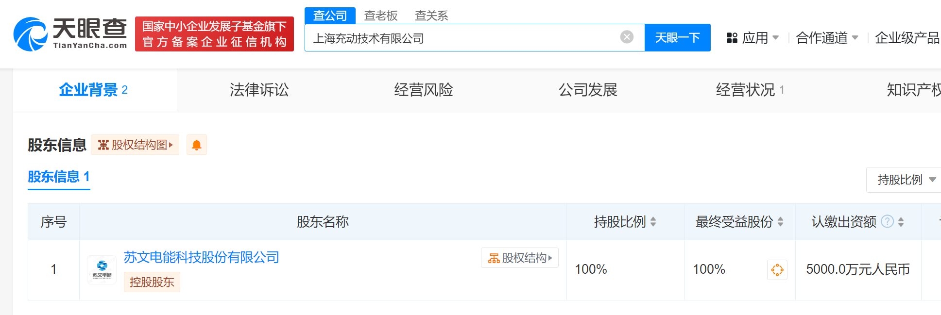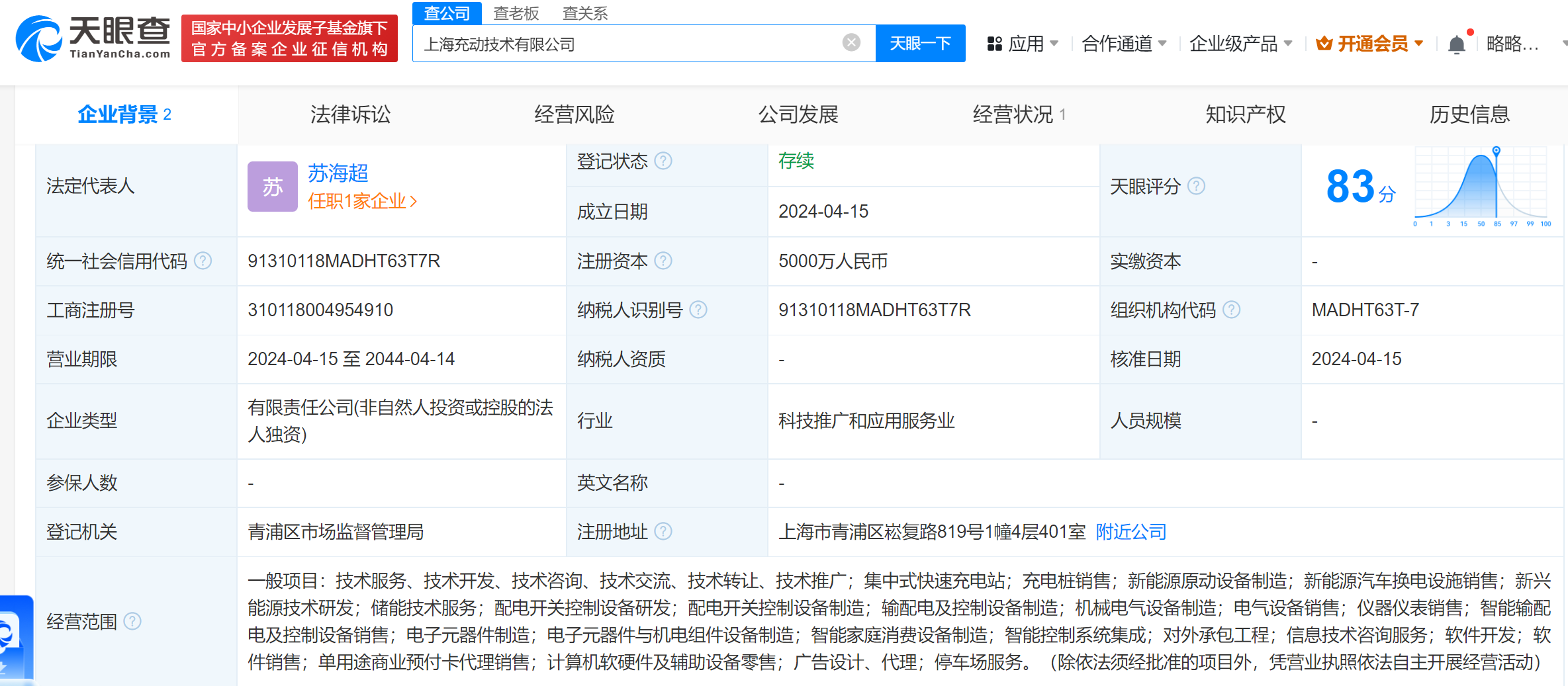 天眼查App显示,近日,上海充动技术有限公司成立,法定代表人为苏海超,注册资本5000万人民币,经营范围含集中式快速充电站、充电桩销售、新能源汽车换电设施销售、新兴能源技术研发、智能控制系统集成等。股东信息显示,该公司由苏文电能(300982)全资持股。