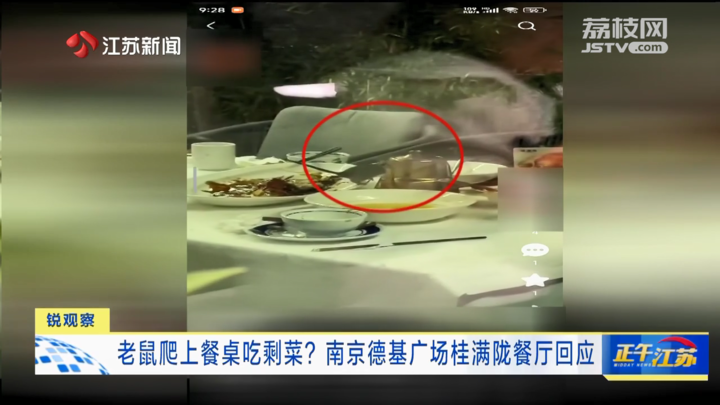4月12日,有网友在某短视频平台发布一条视频:在南京德基广场的桂满陇餐厅的室外就餐区域,一只老鼠爬上餐桌,爬到了食客吃剩的餐盘里,让大家胃口全无。老鼠为何会跑到餐桌上?涉事门店又会作何回应呢?