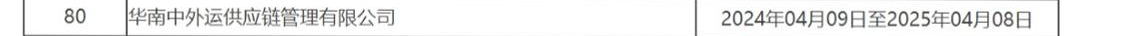 其中,华南中外运供应链管理有限公司被纳入不良行为供应商管理范围,生效时限为:2024年04月09日至2025年04月08日。