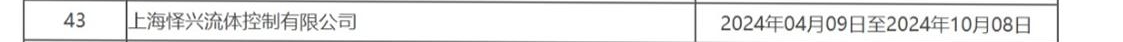 其中,上海怿兴流体控制有限公司被纳入不良行为供应商管理范围,生效时限为:2024年04月09日至2024年10月08日。