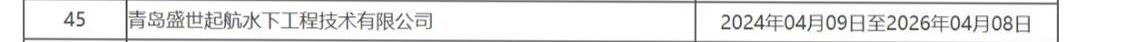 其中,青岛盛世起航水下工程技术有限公司被纳入不良行为供应商管理范围,生效时限为:2024年04月09日至2026年04月08日。