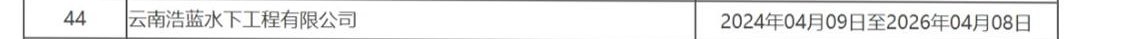 其中,云南浩蓝水下工程有限公司被纳入不良行为供应商管理范围,生效时限为:2024年04月09日至2026年04月08日。