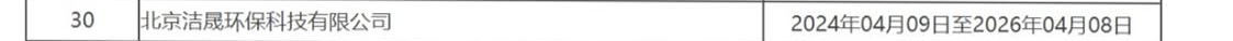其中,北京洁晟环保科技有限公司被纳入不良行为供应商管理范围,生效时限为:2024年04月09日至2026年04月08日。