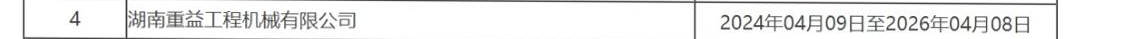 其中,湖南重益工程机械有限公司被纳入不良行为供应商管理范围,生效时限为:2024年04月09日至2026年04月08日。