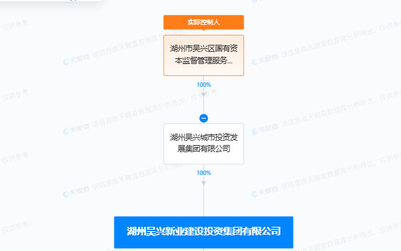 公开资料显示,湖州吴兴新业建设投资集团有限公司由湖州吴兴城市投资发展集团有限公司100%控股,湖州吴兴城市投资发展集团有限公司实际控制人是湖州市吴兴区国有资本监督管理服务中心。