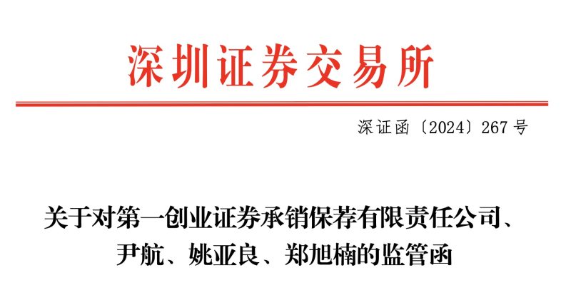 蓝鲸新闻关注到,深交所对第一创业证券承销保荐有限责任公司(下称“第一创业证券”),以及3名保代尹航、姚亚良、郑旭楠下发监管函,指向公司在执业过程中的违规行为。