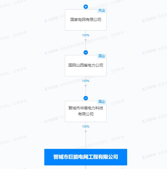 天眼查信息显示,晋城市巨能电网工程有限公司成立于1999年,国家电网成员,位于山西省晋城市,是一家以从事建筑安装业为主的企业。该企业由晋城市华港电力科技有限公司全资持股。