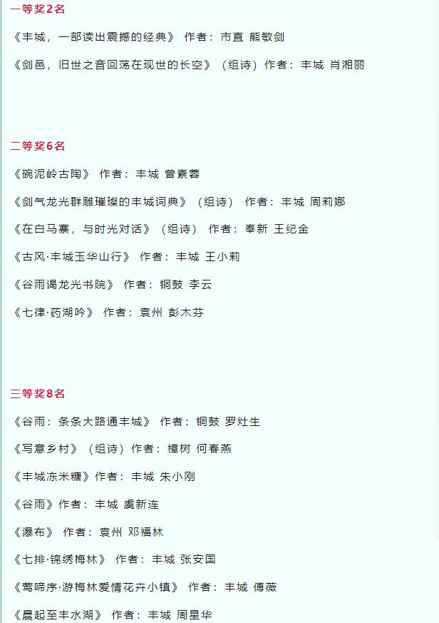 宜春市第40届谷雨诗会一二三等奖名单。(来源/宜春文艺)