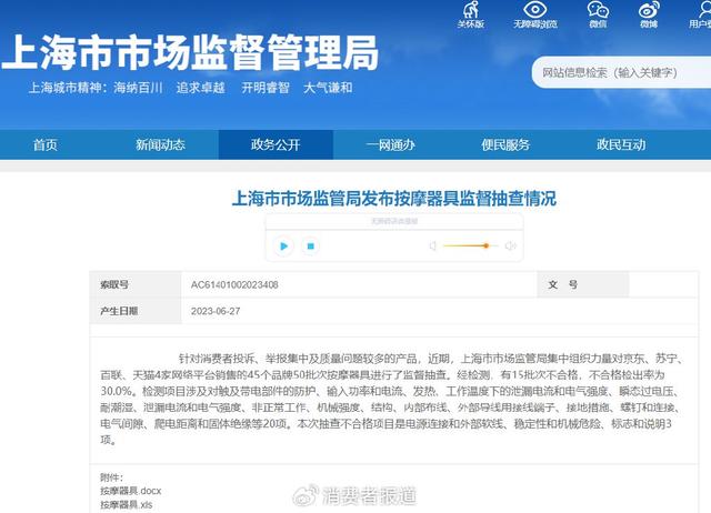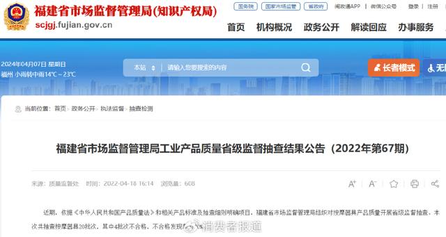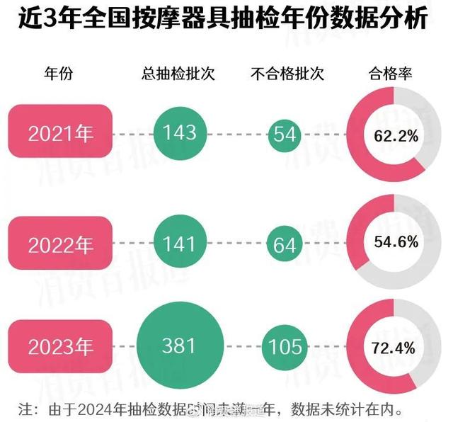 2024年4月,《消费者报道》整理了国家市场监督管理总局及省市级市场监督管理局于2021-2024年发布的按摩器具的抽检数据,分析数据得出对消费者有用的结论。