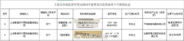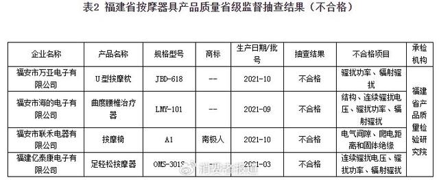 诸多品牌被检出不合格情况,包括标称商标为南极人、361°、荣事达、APTONI的按摩器具。