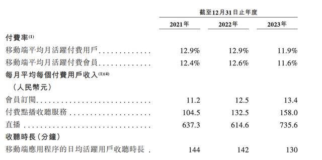 另一方面,对订阅收入影响较大的用户付费率三年来呈现下滑态势,移动端日均活跃用户收听时长也从2021年的144分钟减少到了2023年的130分钟。