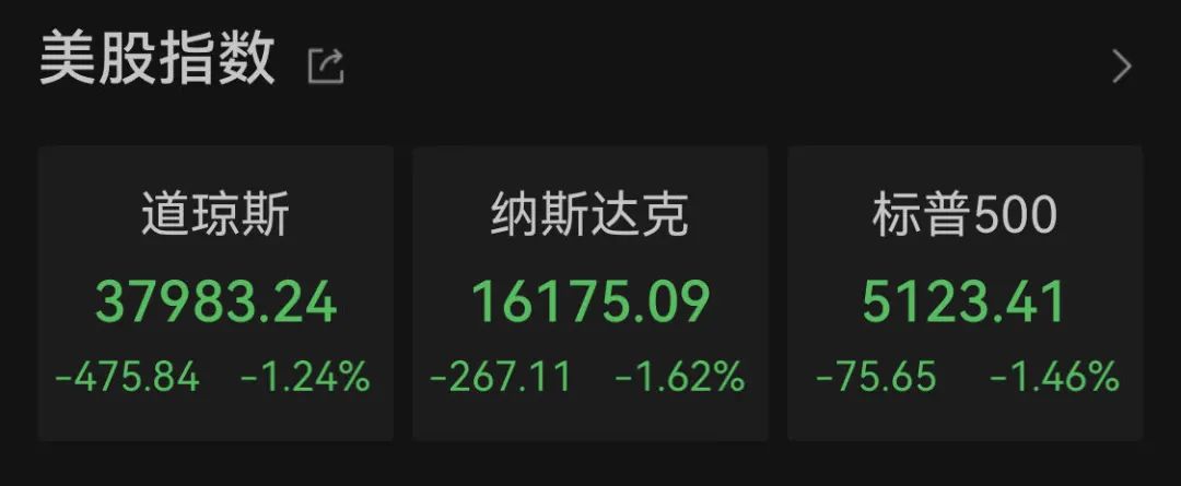 美股方面,道指、纳指与标普500指数纷纷杀跌。