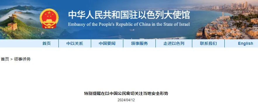 在此,中国驻以色列使馆再次提醒在以中国公民密切跟踪当地安全形势和使馆发出的安全提醒,时刻绷紧安全防范这根弦,坚持非必要不外出,坚决避免前往高风险地区和敏感地点,切实增强安全意识、克服麻痹思想,加强安全防范,确保安全。