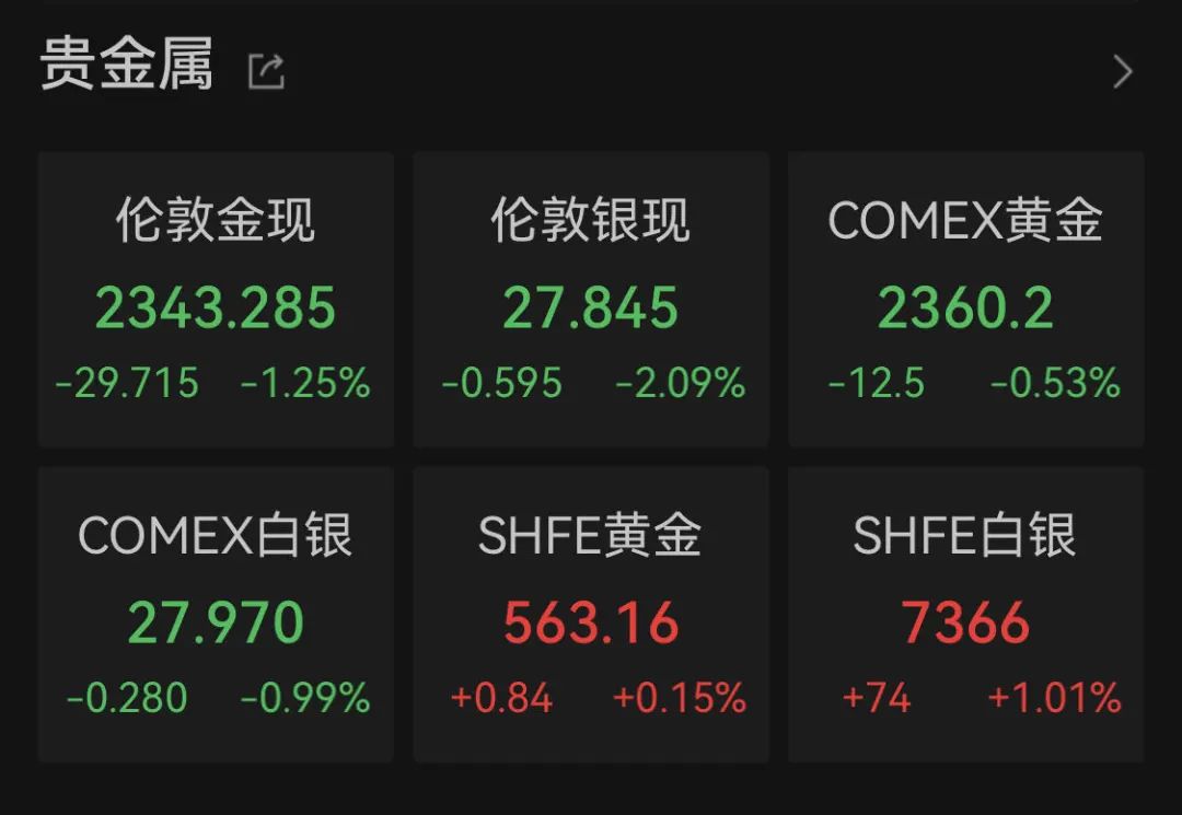 其中,现货黄金一度站上2430美元/盎司关口,再创历史新高。不过,之后黄金白银均出现跳水行情,COMEX黄金下跌0.53%,COMEX白银一度暴涨近6%,最终收跌0.99%。