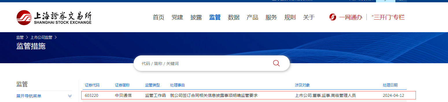 4月12日早上,上交所向中贝通信下发监管工作函,就公司签订合同相关信息披露事项明确监管要求。