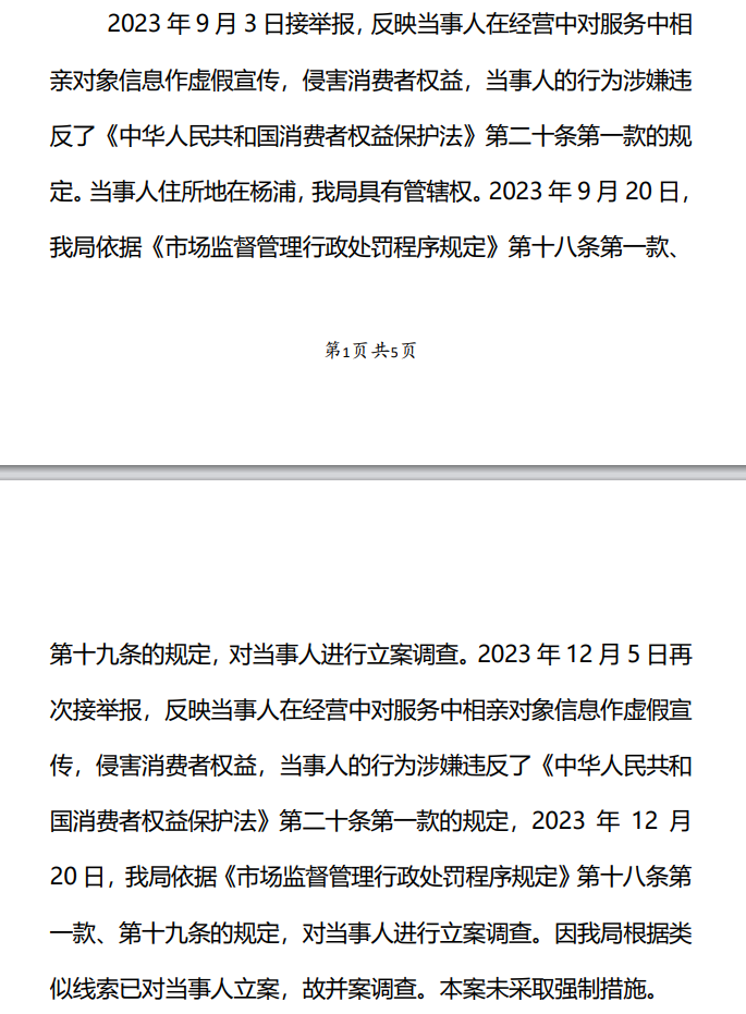 处罚事由显示,2023年9月、12月,当事人被举报在经营中对服务中相亲对象信息作虚假宣传,侵害消费者权益。经查,当事人为“世纪佳缘”app的经营管理者。2022年6月和2023年8月,在销售过程中,当事人销售人员为促使消费者购买高端定制会员服务提供虚假的相亲信息,涉及服务费20799元。