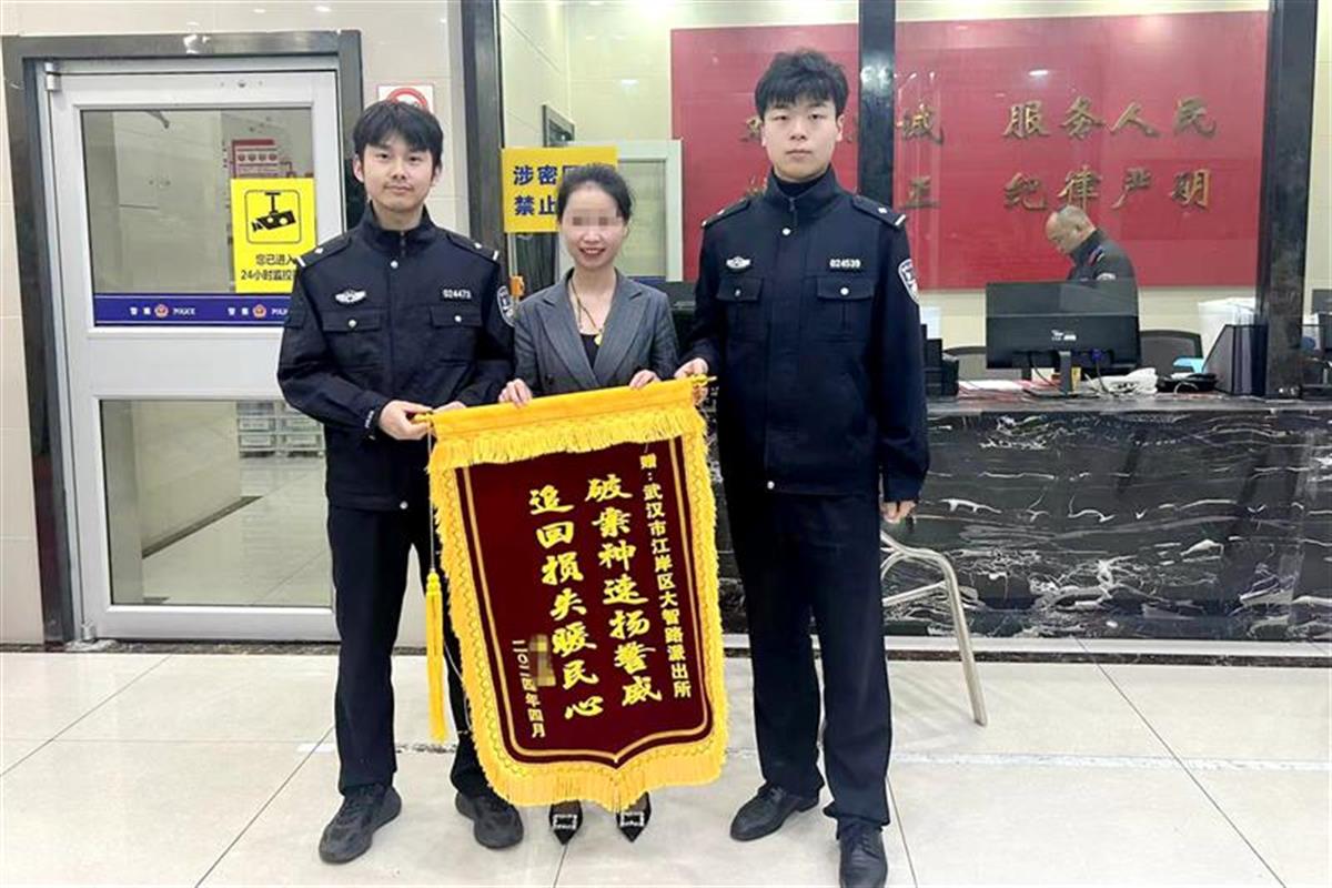 民警把金项链发还给珠宝店,该店员工喜出望外,连声称赞民警:“没想到,你们这么快就破了案,还追回了金项链,点1万个赞!”第二天,珠宝店员工来到派出所赠送锦旗,锦旗上印着两行大字:破案神速扬警威、追回损失暖民心。