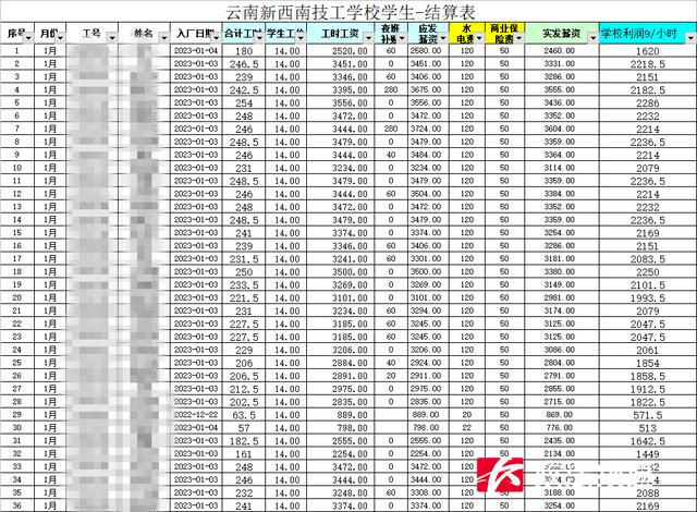 据该电子厂的一名内部负责薪资发放的员工介绍,该校与他们合作接纳实习学生已经有一段时间,类似的情况最近才有人反馈。2023年1月,一批来自云南新西南技工学校的学生到他们电子厂实习,上了两个多月的班。实习结束后,不断有学生来找他们厂里理论,说自己的工资是不对的,厂里应发薪酬与他们实际拿到手的不符。当被问及电子厂是否就此事与学校做过进一步交涉时,该员工表示,“学校说给学生发多少钱是学校的事,轮不到电子厂来管。”