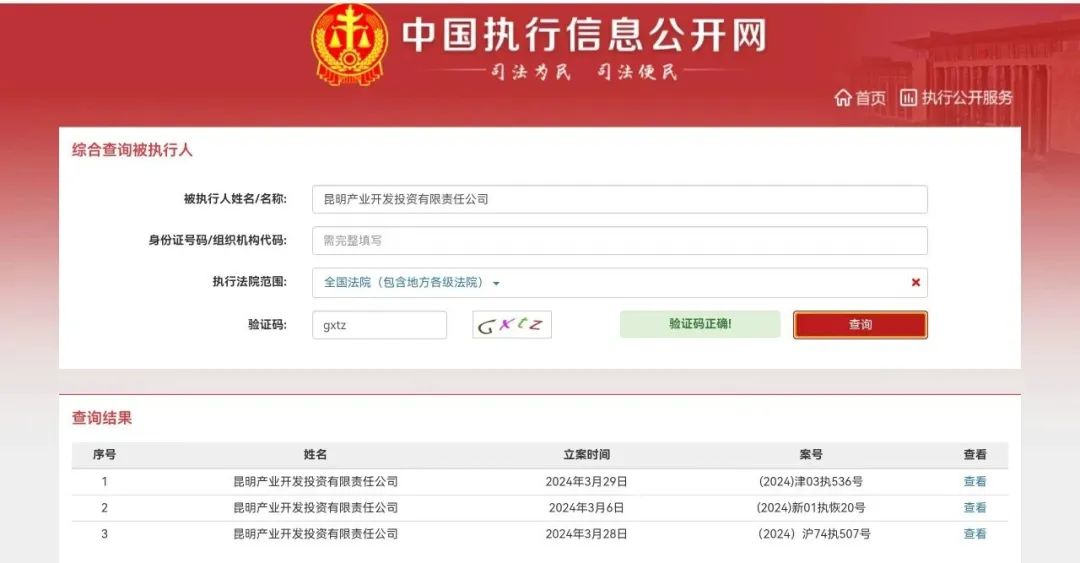 记者注意到,昆明产业开发投资有限责任公司、昆明市城建投资开发有限责任公司等公司已被处于被执行人状态。