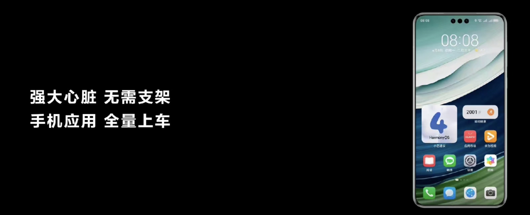 在发布会上,余承东笑称:“一开始想不明白为什么现在有些车还要用手机支架,但后来想明白了,是因为他们的车机导航不好用,需要用手机导航。”