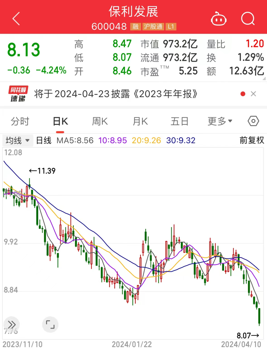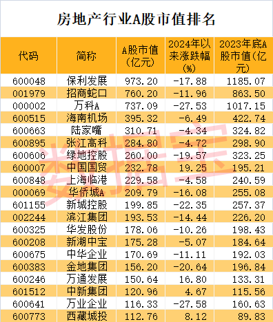 今日收盘,由于保利发展股价大跌,该股A股市值首次跌破千亿;截至目前,A股市值超千亿的房企数量为零。