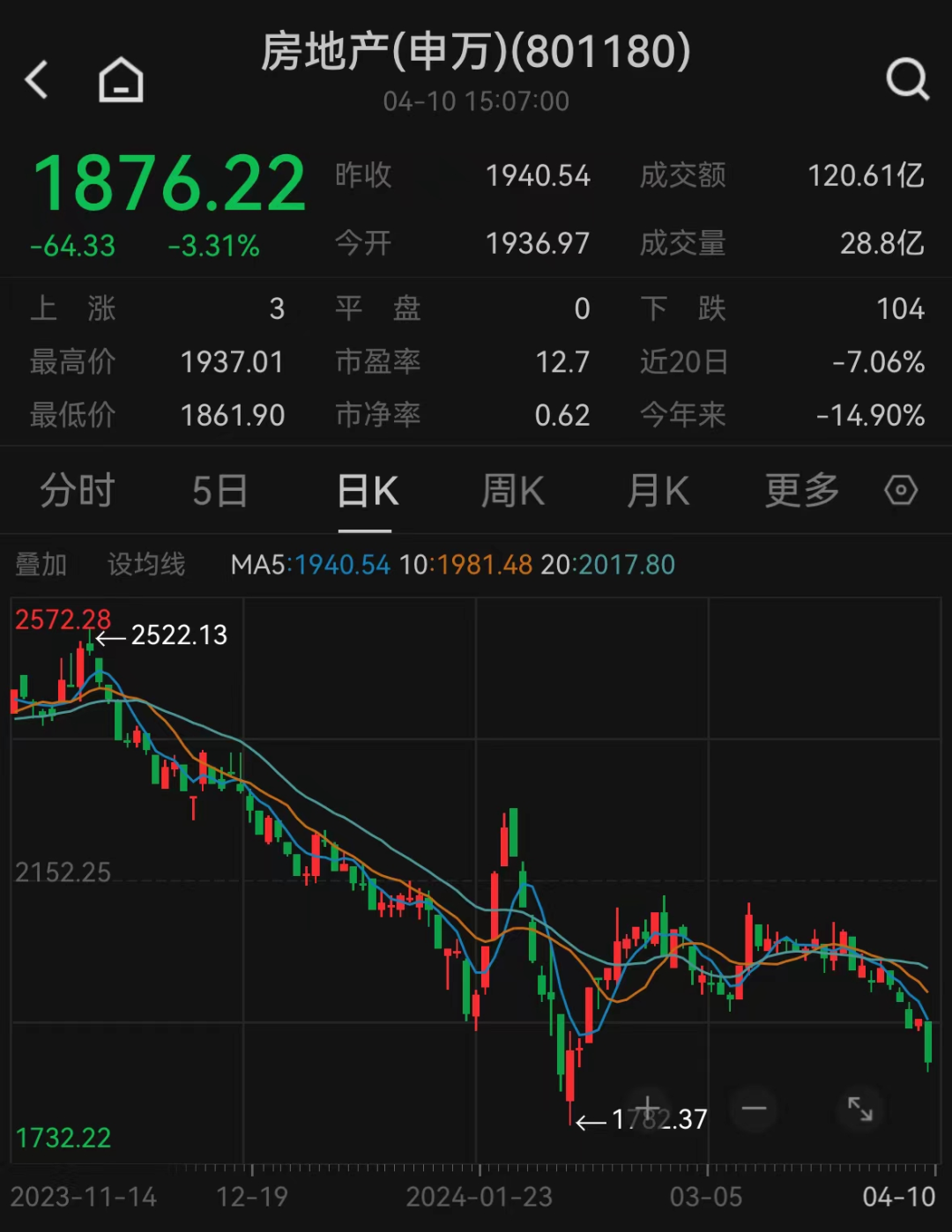 证券时报·数据宝统计,截至4月10日收盘,房地产年内累计跌幅达到14.9%,大幅跑输同期上证指数。