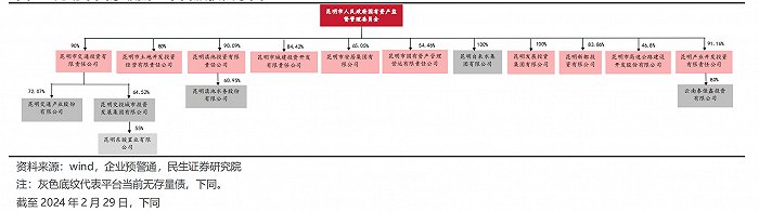 民生证券近期研报统计,截至2024年2月23日,昆明市共有26家发债平台,主要包括:地级市平台16家、区县级平台3家,国家级园区7家。