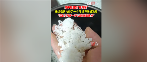 据这位男子称,他将这种米煮熟后放在锅内保存了一个月,令人惊讶的是,米饭不但没有变质,而且没有产生任何异味,而且锅盖一直保持着紧闭状态。