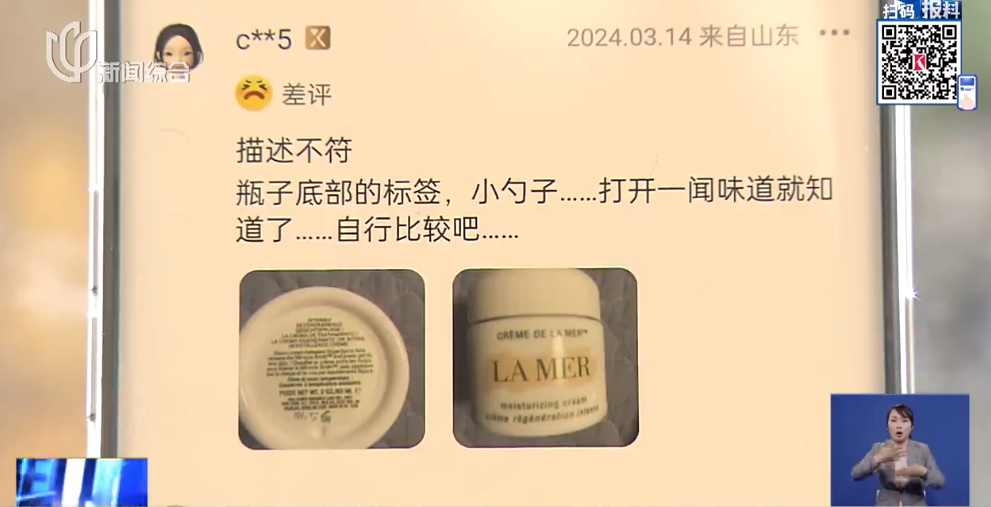消费者张小姐:即使感觉肤感不一样,我也认为是盒马会员店,他们不会卖假的,所以就没有怀疑过;结果平台上验下来就是假的,两瓶都是假的。