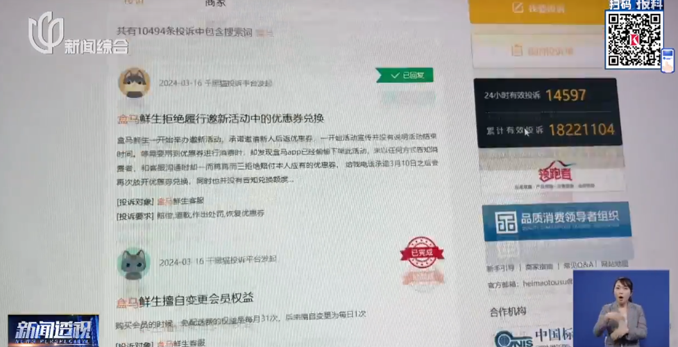 有投诉平台数据显示,仅今年2月以来,有关盒马货不对板等问题的投诉有近300条。