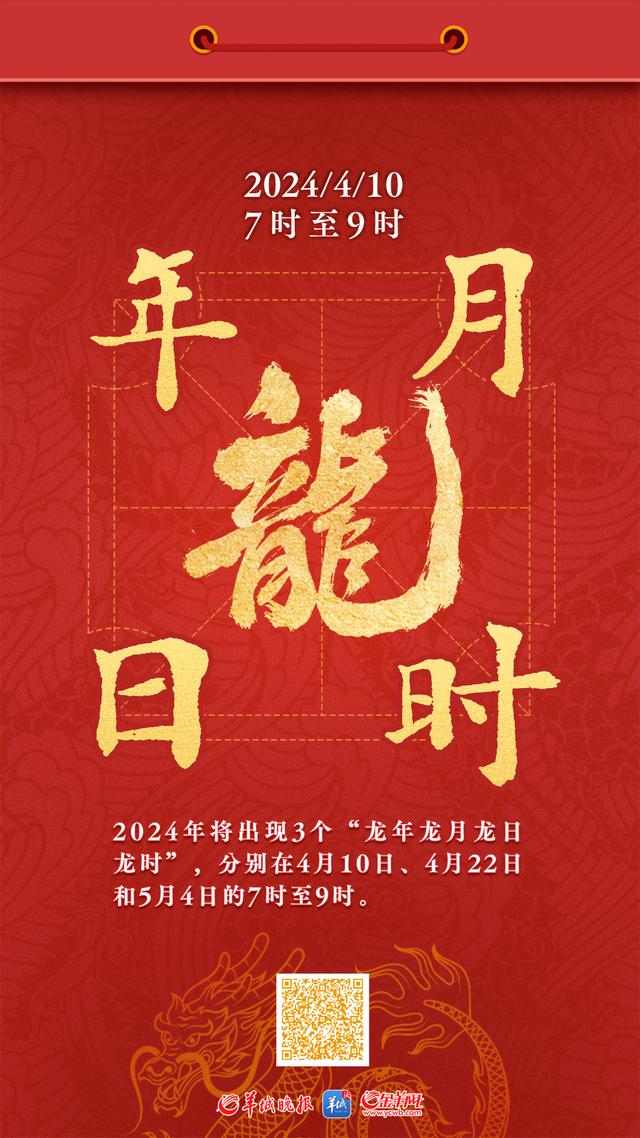 “我国古人又以十二生肖对应各个地支,今年为甲辰龙年,所谓龙月、龙日、龙时即为辰月、辰日、辰时。”王科超说,2024甲辰龙年的龙月里有3个龙日,因此将出现3个“龙年龙月龙日龙时”,分别在4月10日、4月22日和5月4日的7时至9时。