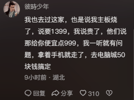 “维修员还会套顾客的话,看你懂多少电子相关的知识,他们会看人下菜碟,发现你什么都不懂时,就会连蒙带骗。”李某补充,甚至有些维修店,一旦进去,不花点钱,顾客很难离开。