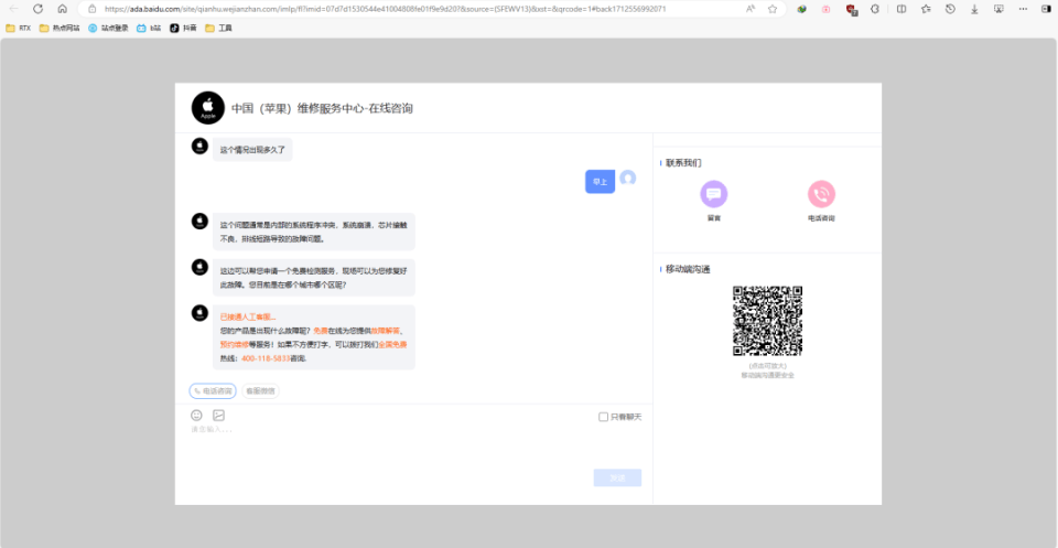 网页显示,维修店的名称依然为“中国(苹果)维修服务中心”,头像为苹果公司LOGO。