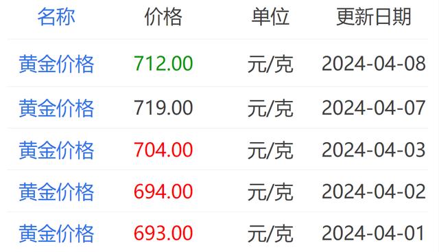 扬子晚报/紫牛新闻记者搜索发现,进入4月以来,品牌店的金价变化可谓日新月异。以金投网一家知名金店的每日金价为例,4月1日、2日、3日、7日、8日分别为每克693元、694元、704元、719元和712元。
