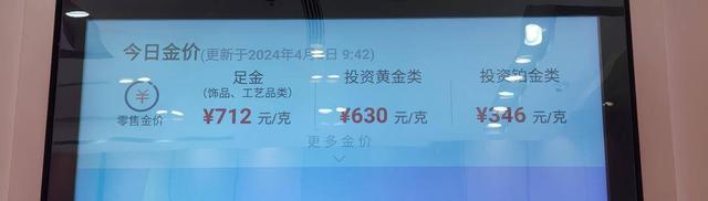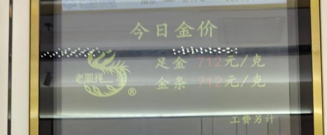 4月8日上午和下午,扬子晚报/紫牛新闻记者两次来到南京市建邺区某商场内的老凤祥和周大福门店探访。上午10点多,记者看到,老凤祥和周大福门店的“今日金价”的足金售价均为712元/克。