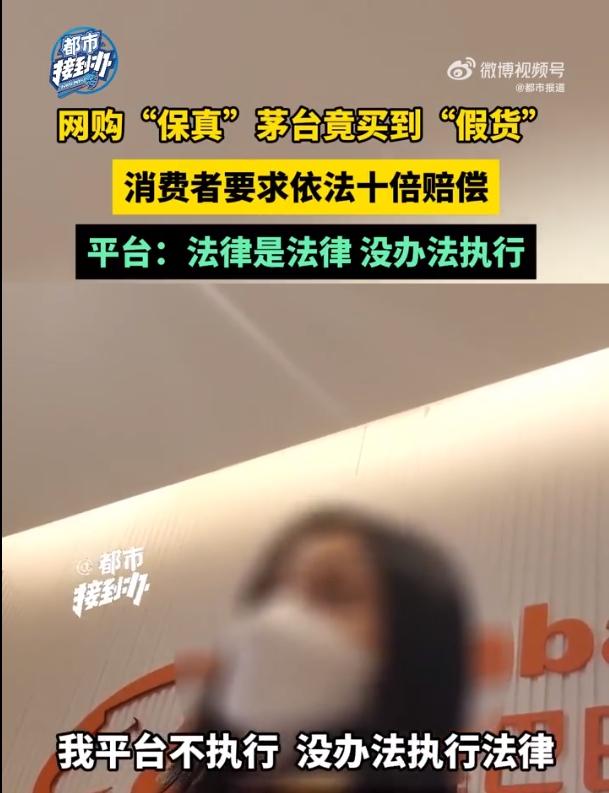 因为酒水属于食品,根据法律规定,他向平台方提出假一赔十的要求,却遭到阿里巴巴客服拒绝:“平台规定是假一赔三,法律是法律,平台没办法执行法律,想要十倍赔偿你直接走法律途径。”