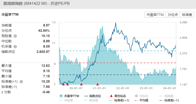 图:万得顺周期指数(8841422.WI)近五年PE(TTM)变化
