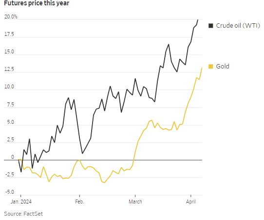 《华尔街日报》报道中称,与近期连续创历史新高的黄金一样,石油也处于不同寻常的地位,该资产受益于两个主题,即经济增长和地缘政治冲突升级。