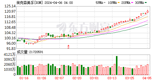 3月,埃克森美孚录得超11%的涨幅。进入4月,股价涨势延续,上周累涨4.68%。4月5日,该公司更是在盘中创下122.14美元/股的历史新高。Wind数据显示,今年以来,埃克森美孚股价已累计上涨超过22%,这样的区间涨幅即使与美股所谓的“七巨头”相比也毫不逊色,仅次于英伟达和Meta,超越了亚马逊、微软、谷歌、苹果和特斯拉。
